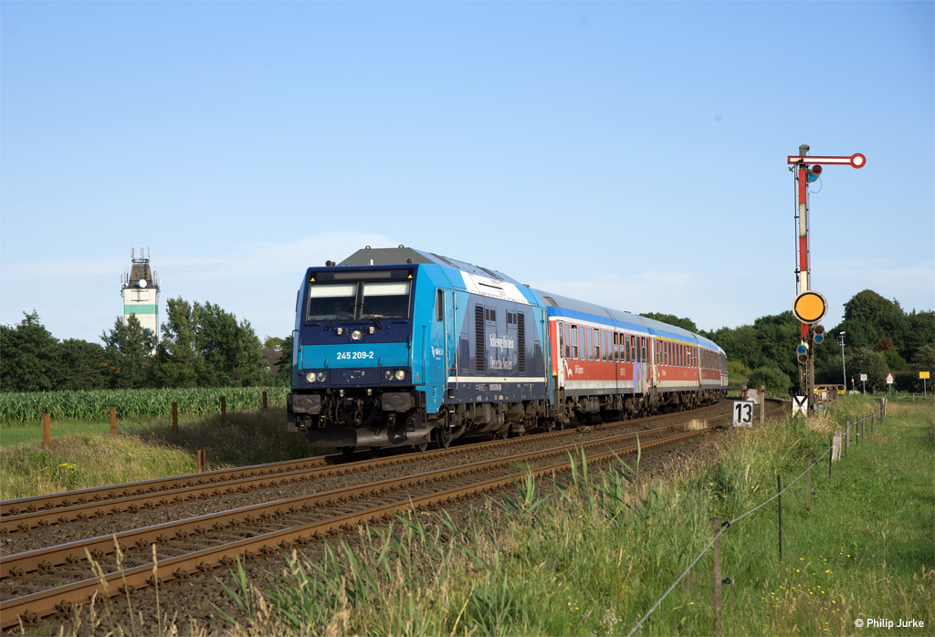 245 201-3 mit der NOB 81726 (Hamburg-Altona - Westerland) am 21.07.2015 bei Stedesand.