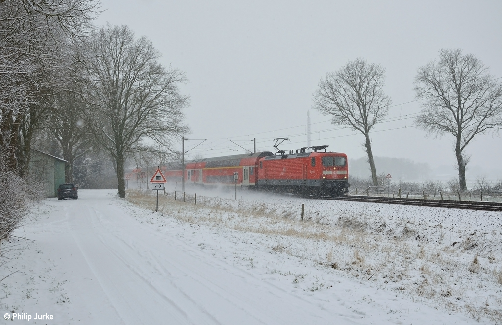 112 149-0 mit dem RE 21016 (Hamburg Hbf - Kiel Hbf) am 24.01.2015 bei Wulfsmoor.