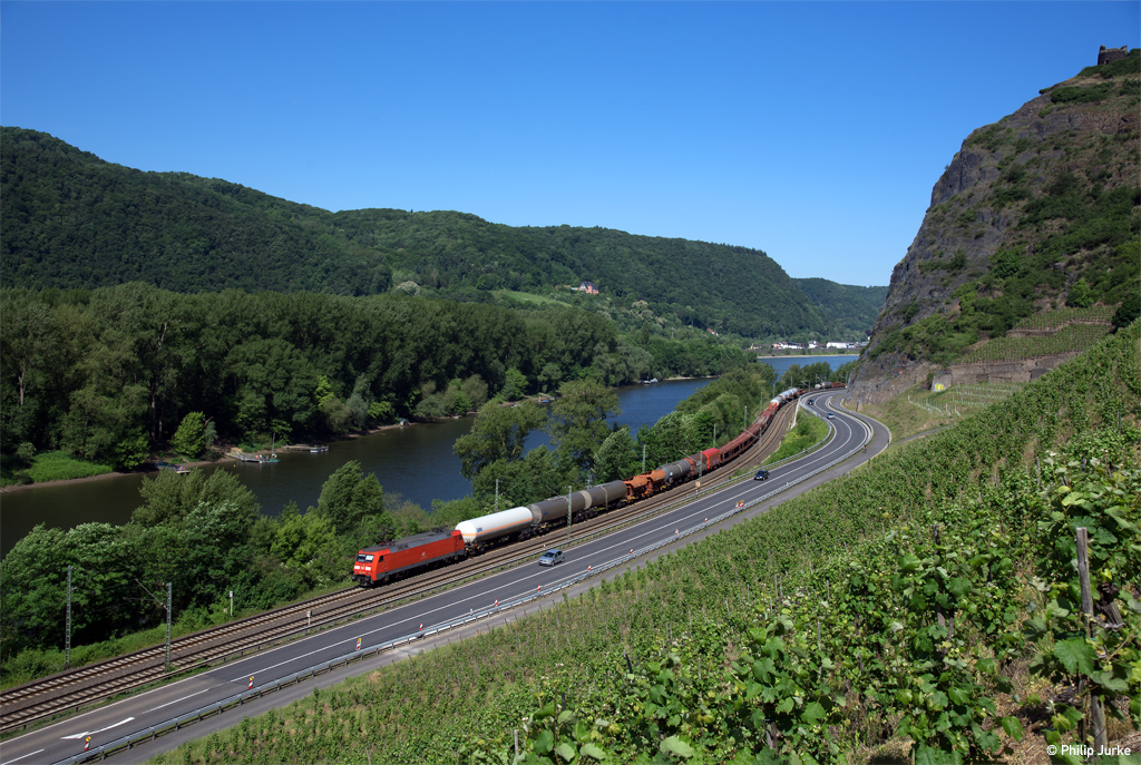 152 075-8 mit einem Mischer am 27.05.2017 bei Leutesdorf.