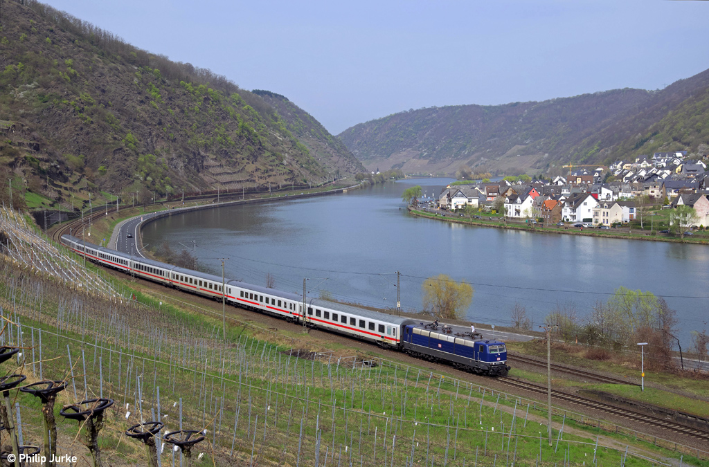 181 211-4 mit dem PbZ 2471 (Dortmund Hbf - Frankfurt(Main)Hbf) am 20.04.2016 bei Haan-Ellscheid.