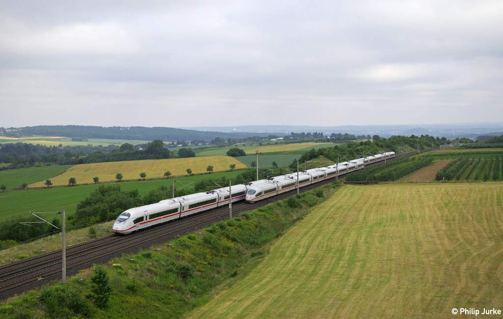 Der 407 012-4 mit dem ICE 606 von Köln Hbf nach Dortmund Hbf in Haan Ellscheid am 17.07.2014