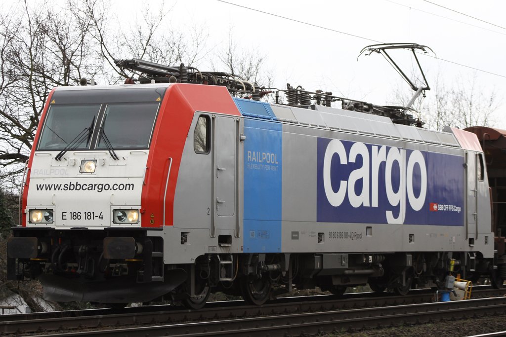 SBB Cargo mit Containerzug ist am 19.08.2010 auf der rechten Rheinstrecke in Königswinter (Bilck vom Drachenfels) in Richtung Süden unterwegs.