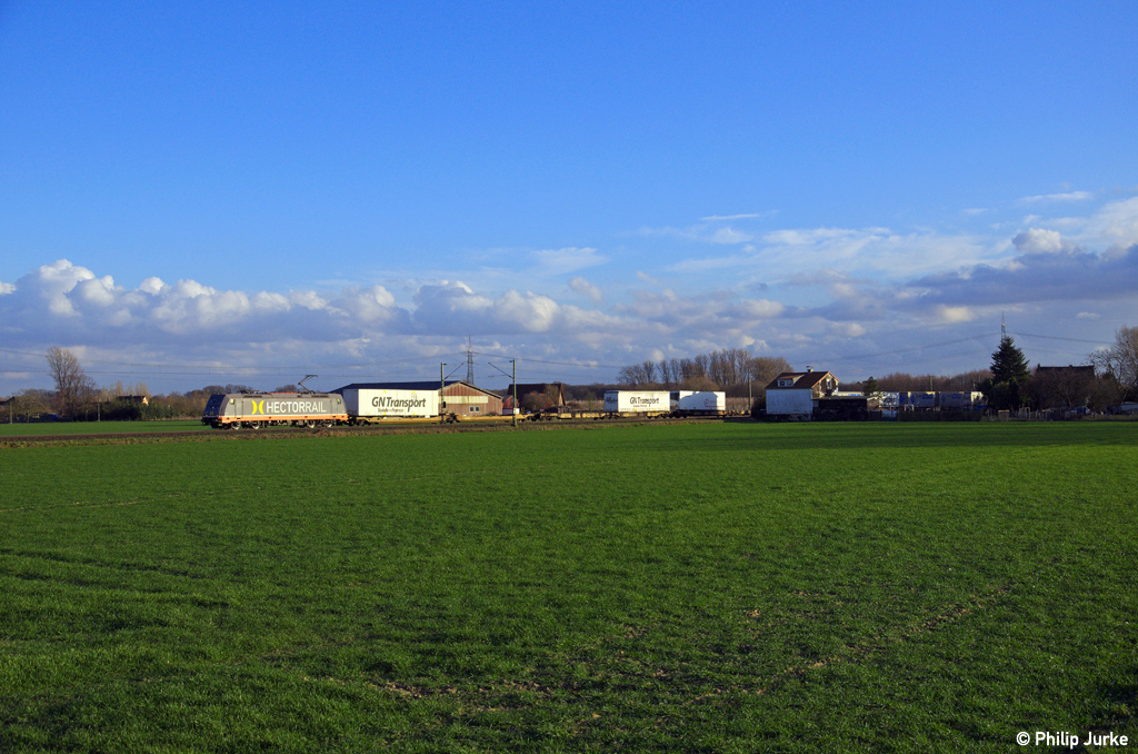 241 002-3 "Skywalker" mit dem DGS 42710 (Ehrang Nord - Helsingborgs Central) am 16.02.2014 bei Bösinghoven.