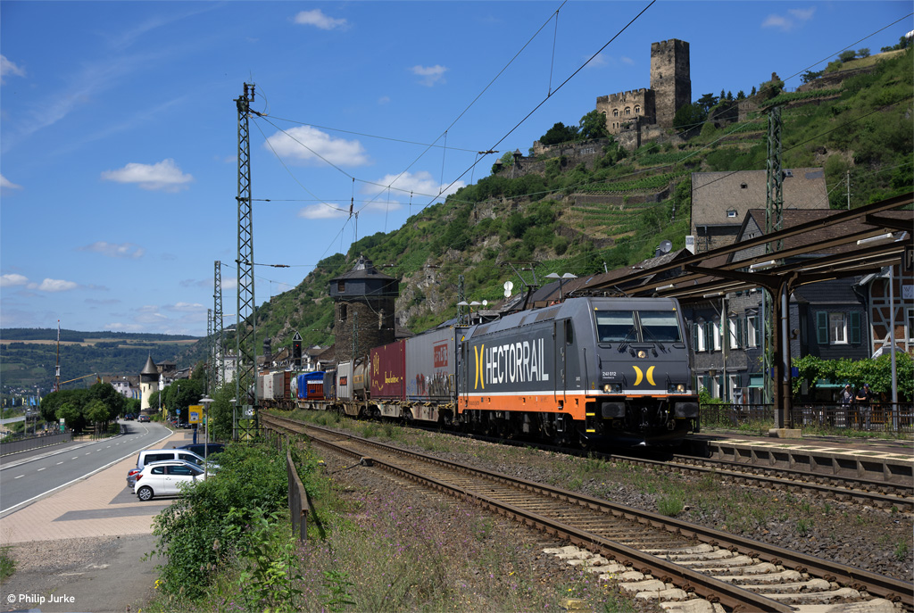 241 012-2 "Chewbacca" mit einem KV-Zug am 13.07.2017 bei Kaub.
