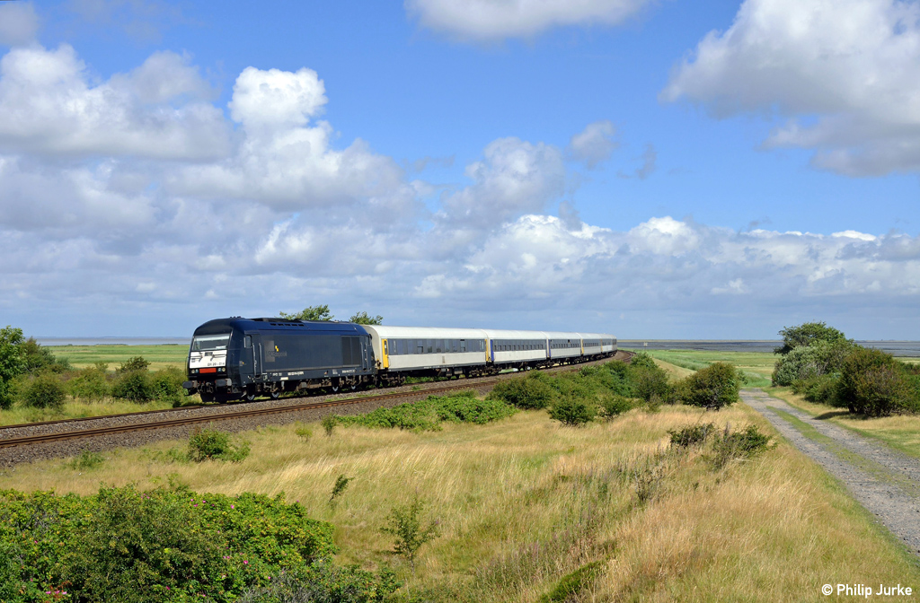223 014-2 mit der NOB 81752 (HH-Altona - Westerland(Sylt) am 26.07.2015 zwischen Klanxbüll und Morsum.