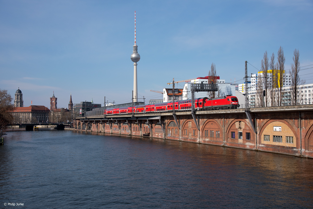 182 006-7 mit dem RE 3181 (Brandenburg Hbf - Frankfurt(Oder)Hbf) am 30.03.2018 an der Jannowitzbrücke.