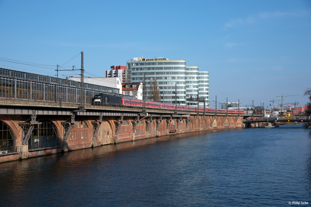 182 517-3 "Fitzgerald" mit dem LOC 1818 (Stuttgart Hbf - Berlin-Lichtenberg) am 30.03.2018 an der Jannowitzbrücke.