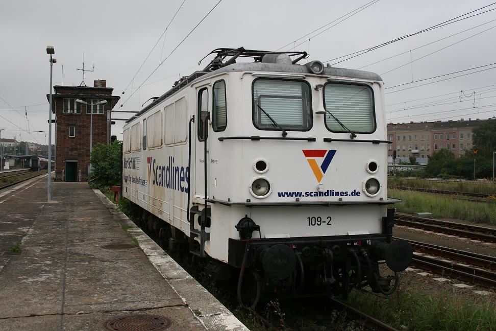 Ehemalige BR 211 der DR mit Werbung für Scandlines abgestellt in Bln-Lichtenberg