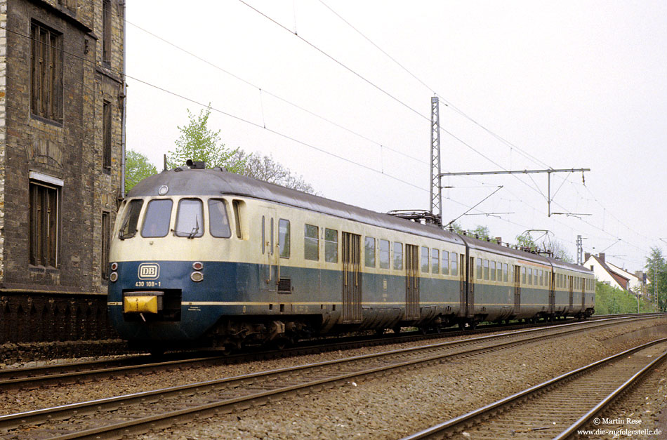 Vom Bw Hamm aus wurde die Baureihe 430 eingesetzt und erreicht bis Sommer 1983 sogar noch den Bahnhof Warburg. Als E7866 (Warburg - Hamm) erreicht der 430 108 in wenigen Augenblicken Paderborn. 10.5.1983 Martin Rese