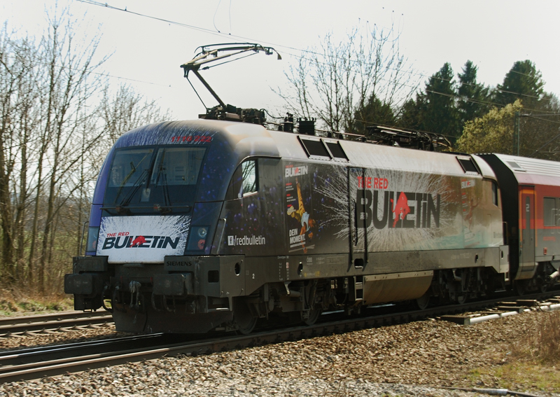 1116 015, eine von noch vier Tauris im "Hochwasser-Outfit", beförderte am ersten Julitag 2012 RoLa 41300 über die Westbahn an Neulengbach vorbei Richtung Wels.