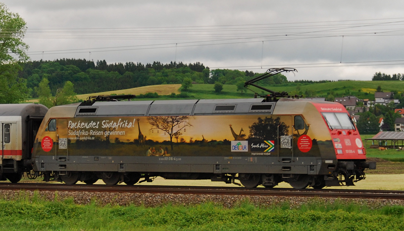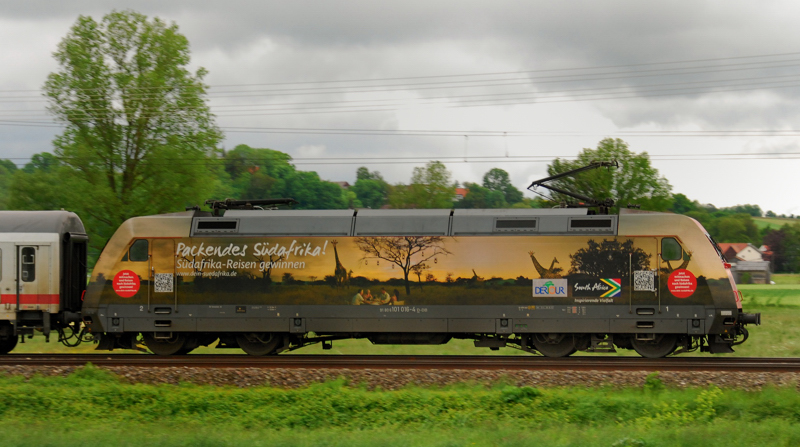 Portrait der 101 016-4, packendes Südafrika, aufgenommen am 22.05.13, bei Burgau. (zum Bild)